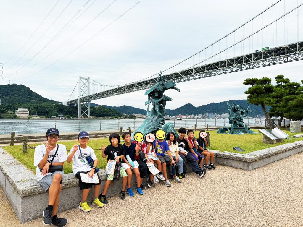 無事に下関側に到着したあとは、関門橋をバックに全員で集合写真