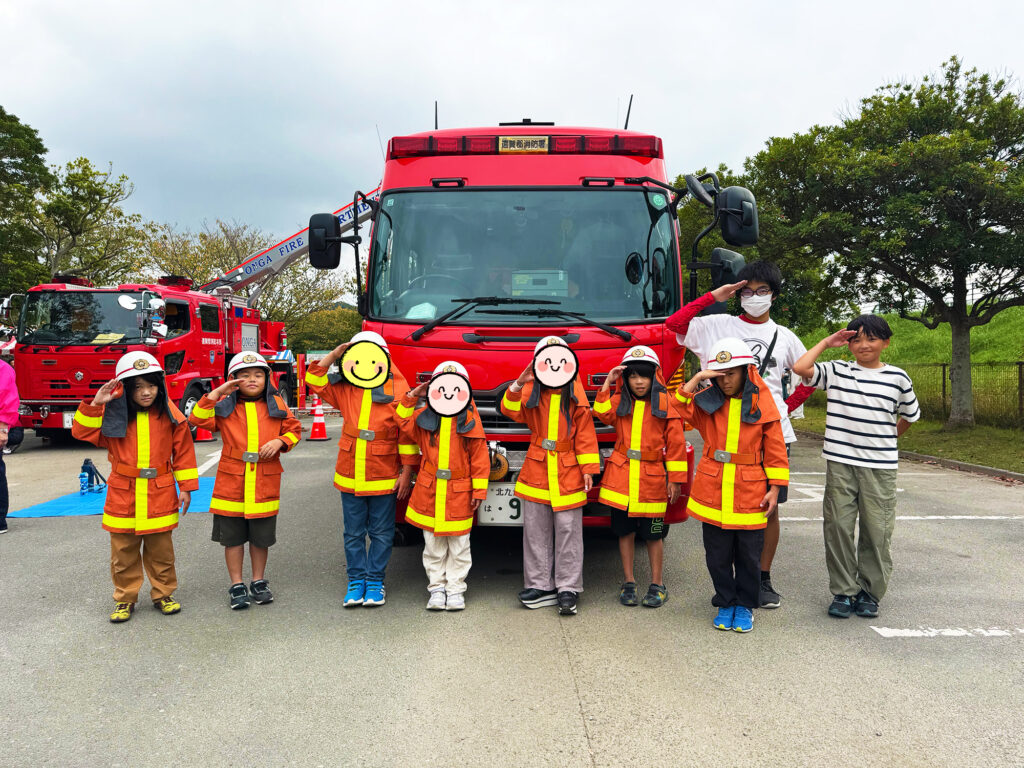 また、消防車の乗車体験コーナーでは、防火服を着て記念撮影📸