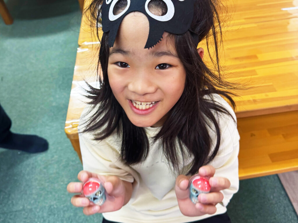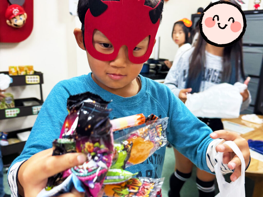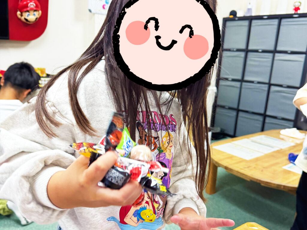 みんなで思い思いの仮装をして、お菓子のつかみ取りや、お部屋の中に隠されたおやつを探す「お菓子の宝探しゲーム」を楽しみました🍬