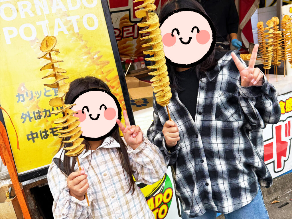 トルネードポテトや10円パン、チーズハットグ、袋入りのレモネードなど、思い思いの屋台グルメを楽しんだり、