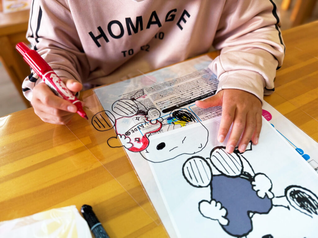 みんな集中して、スヌーピー、スティッチ、クレヨンしんちゃん、ブレインロットなど、個性的な作品を完成させていました!