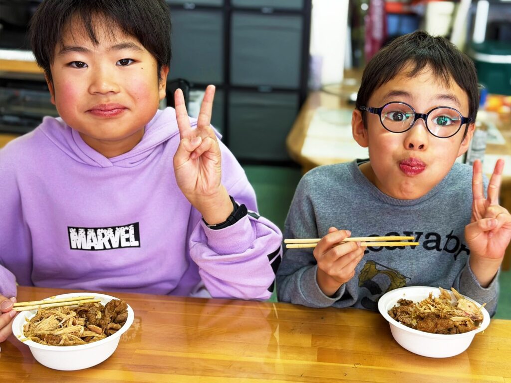 コストコのサーモンを使ったサーモン丼と、ロティサリーチキンをほぐして作ったチキン丼をみんなでおいしくいただきました!