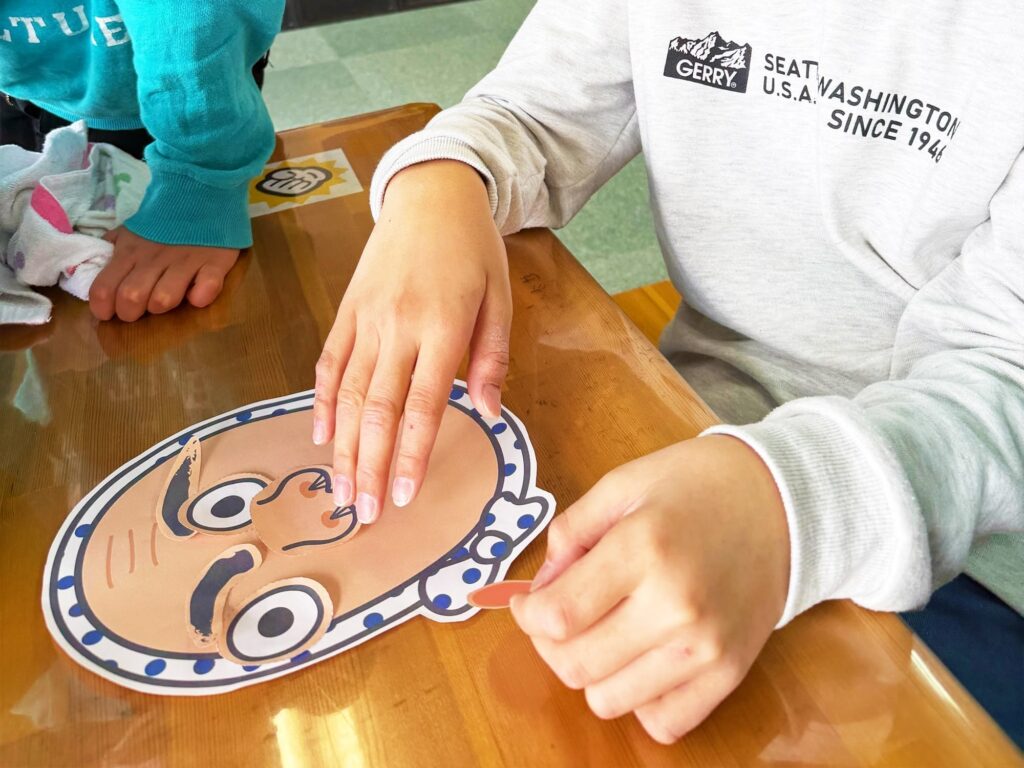 おかめ・ひょっとこの顔のパーツを自分たちで丁寧にカット✂️